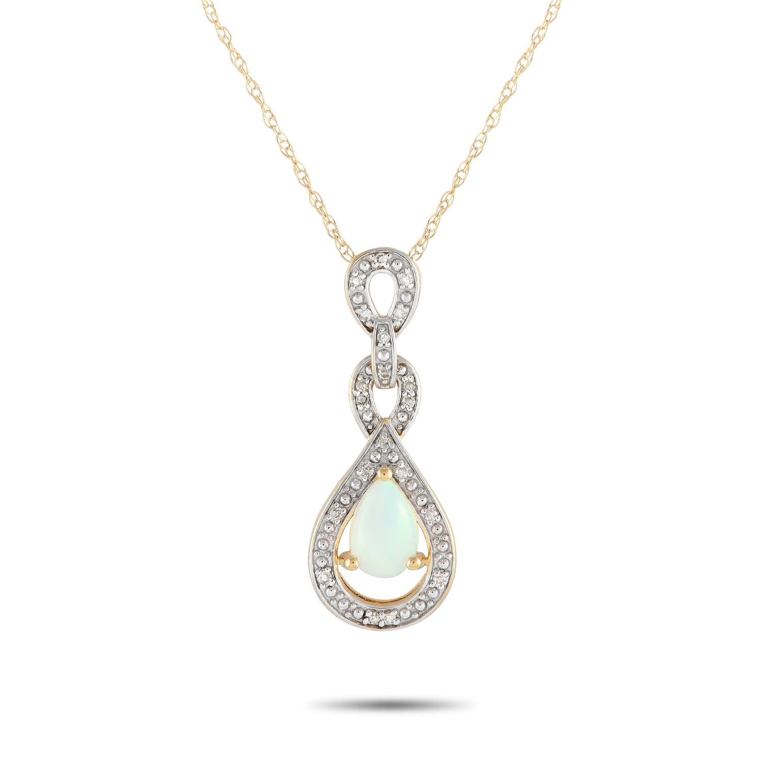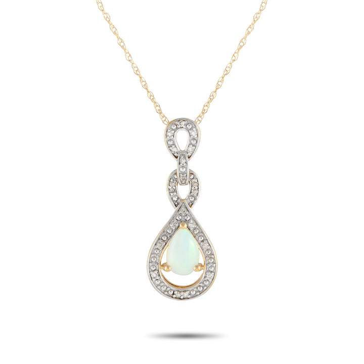 LB Exclusive 14K Yellow Gold 0.08ct Diamond and Opal Necklace PD4-16318YOP