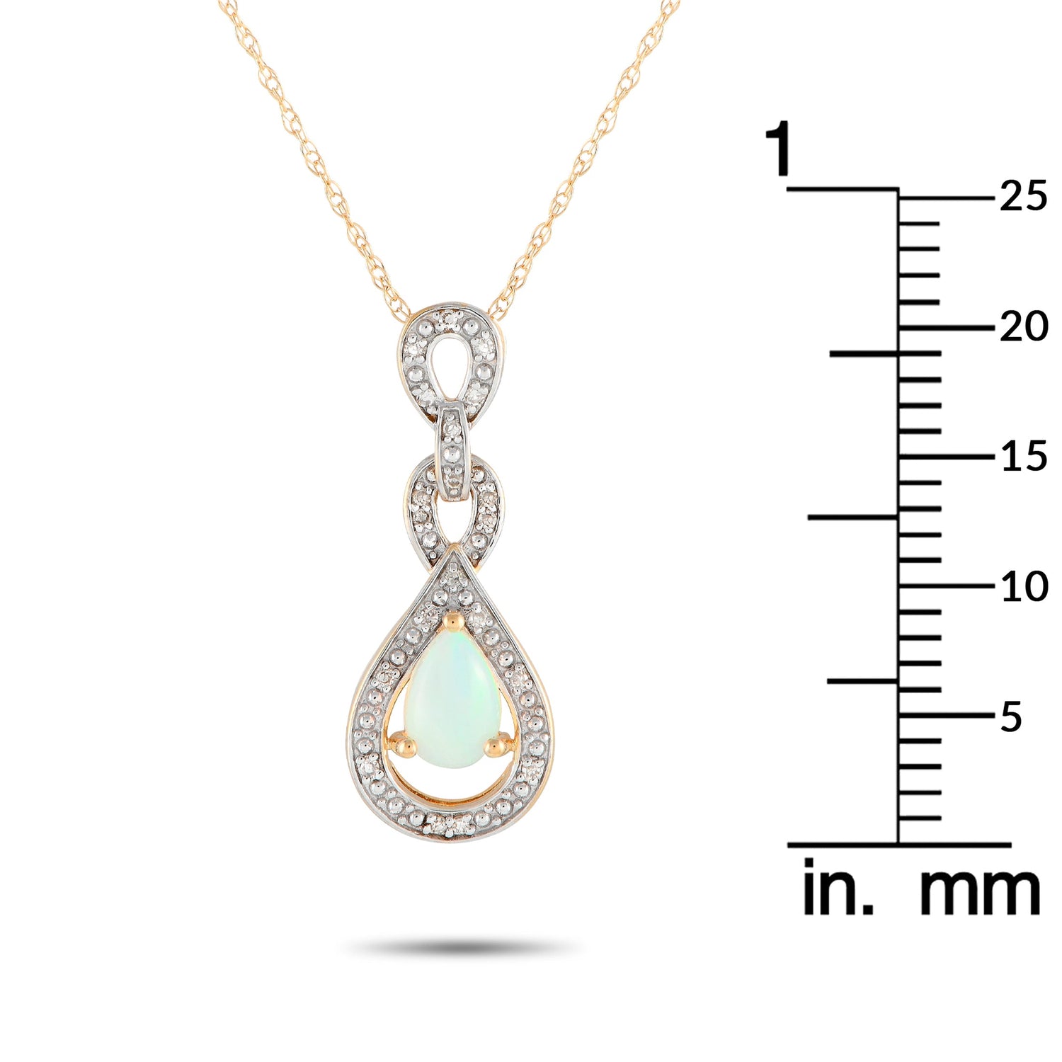 14K yellow gold, 0.08ct diamonds, Opal gemstone, 18' chain.