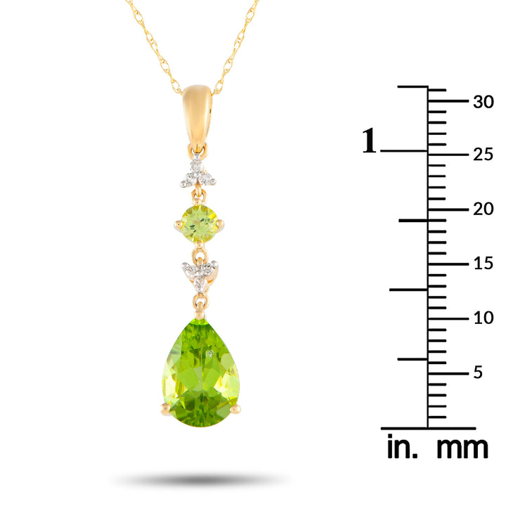 LB Exclusive 14K Yellow Gold 0.05ct Diamond and Peridot Pendant Necklace PD4-16247YPE