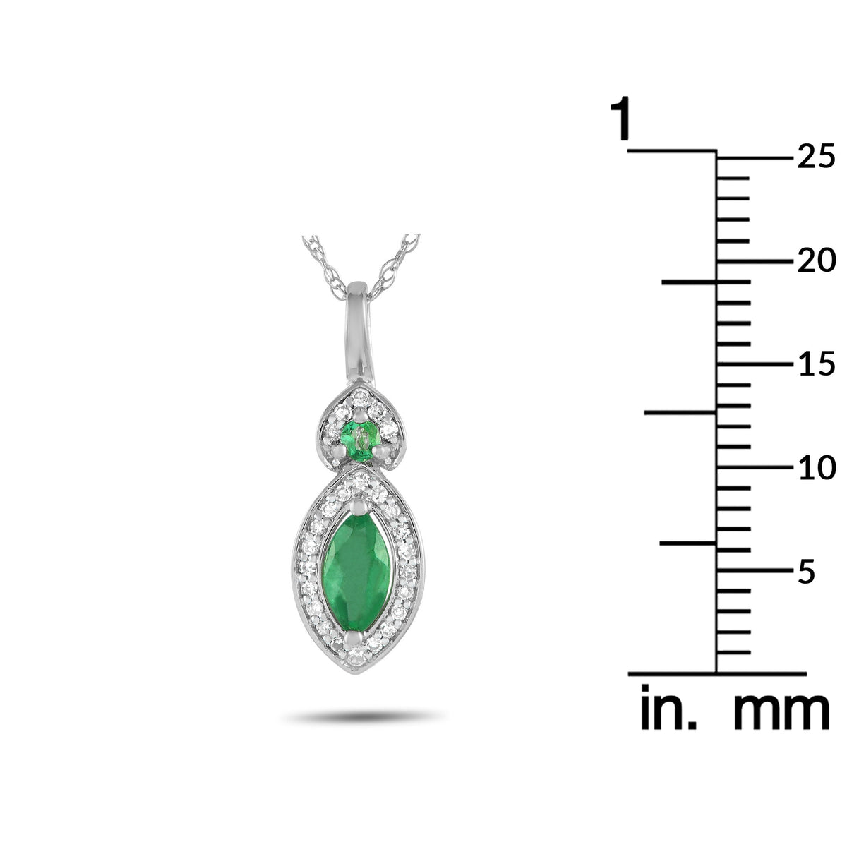 LB Exclusive 14K White Gold 0.07ct Diamond and Emerald Pendant Necklace PD4-16299WEM