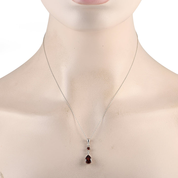LB Exclusive 14K White Gold 0.05ct Diamond and Garnet Pendant Necklace PD4-16247WGA