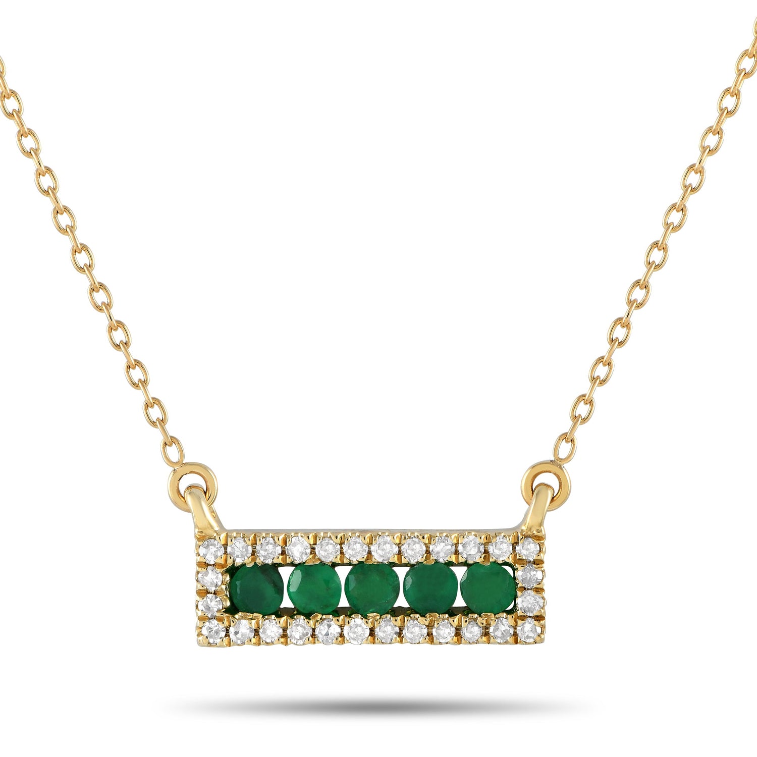 LB Exclusive 14K Yellow Gold 0.15ct Diamond and Emerald Pendant Necklace NK4-14783YEM