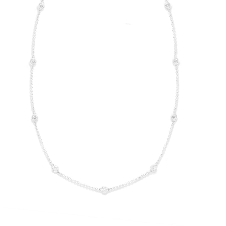 This Diamonds-by-the-Yard Necklace by Diana M exudes understated elegance and brilliant simplicity. Crafted in lustrous 14-karat white gold, the design features 0.50 carats of round diamonds stationed along an 18-inch chain, adding just the right amount of sparkle. Perfect for layering or worn solo for a refined and graceful look.