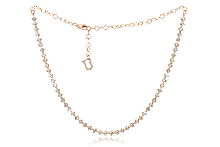 14kt rose gold, 12' diamond tennis necklace featuring 2.65 cts tw round diamonds