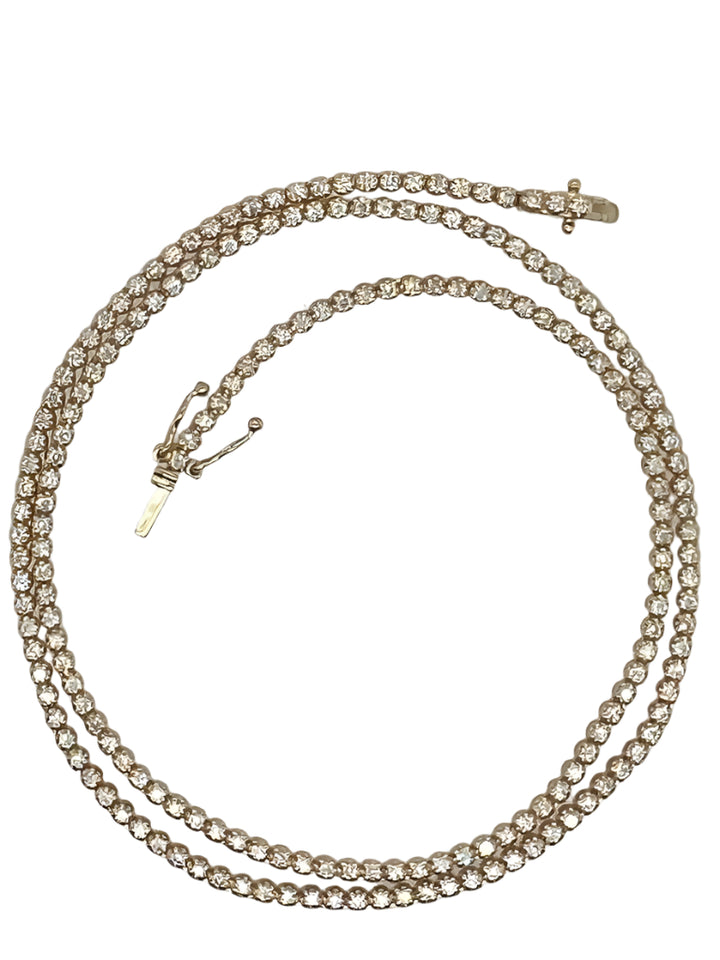 14KT yellow gold with 8.10 carats total weight of diamonds, 152 stones in total. Length: 16 inches.