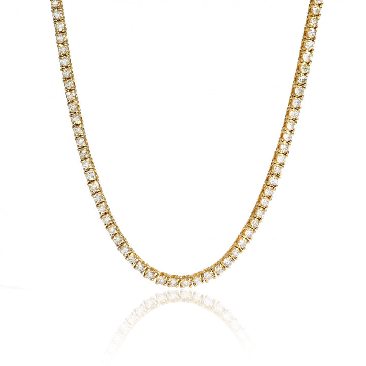 14kt yellow gold, 16' 4 prong diamond tennis necklace featuring 4.00 cts tw round diamonds