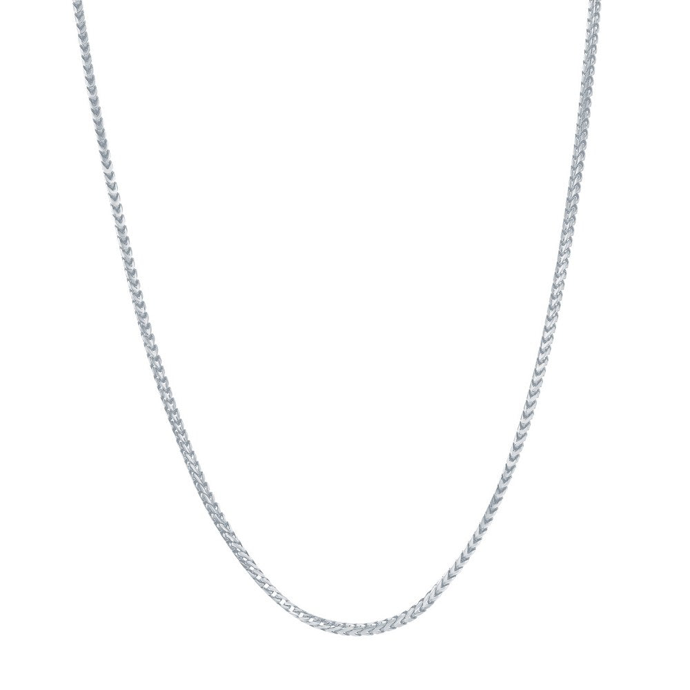 The Franco Chain 1.5mm Sterling Silver or Gold Plated Over Sterling Silver 16' Necklace by Simona offers a sleek and sophisticated look. With a diamond-cut finish, this necklace reflects light beautifully, making it perfect for everyday wear or special occasions. The 16' length is ideal for layering or wearing as a standalone piece.