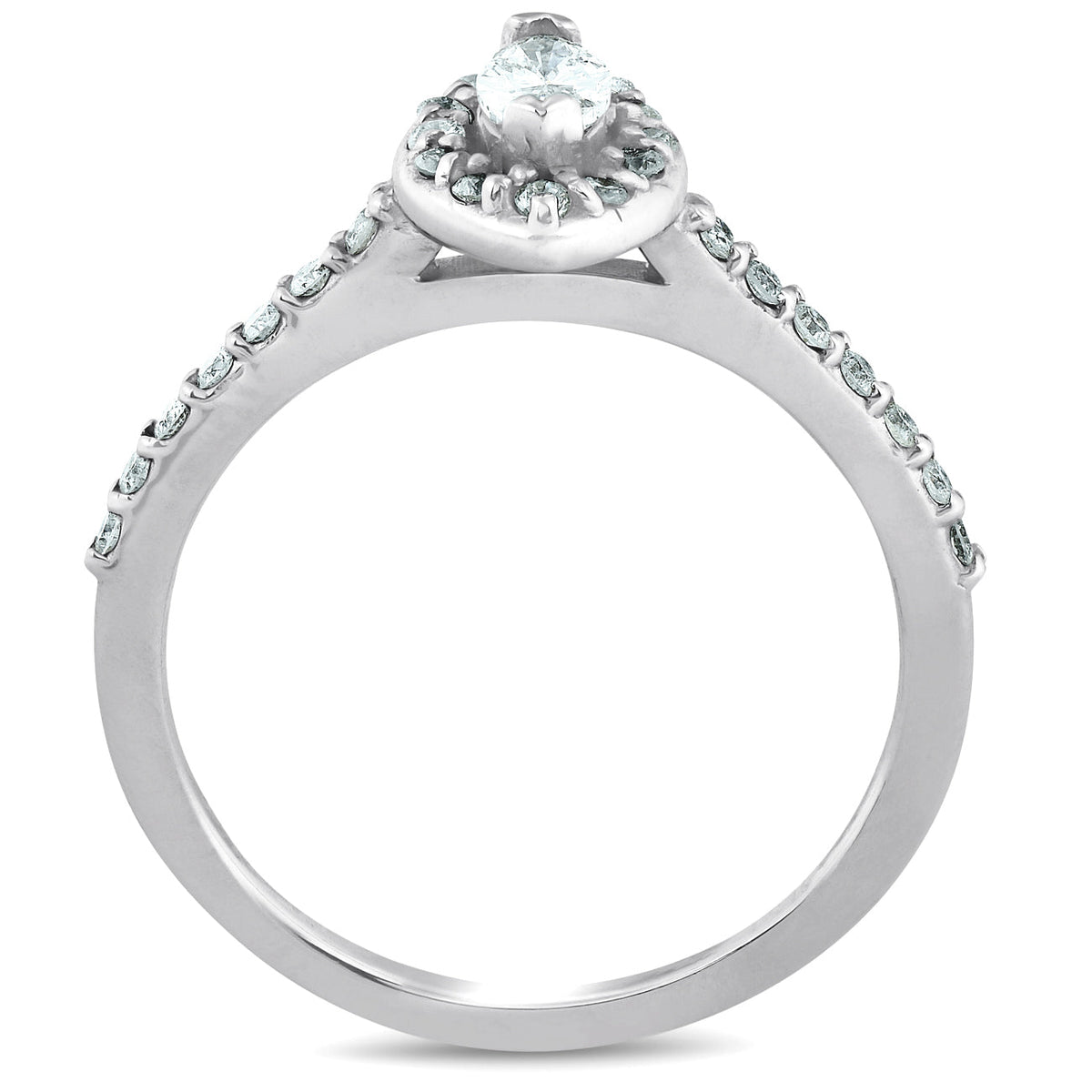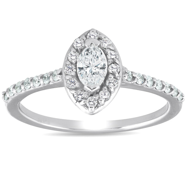 1/2 ct Halo Marquise Diamond Engagement 14K White Gold Ring Lab Grown