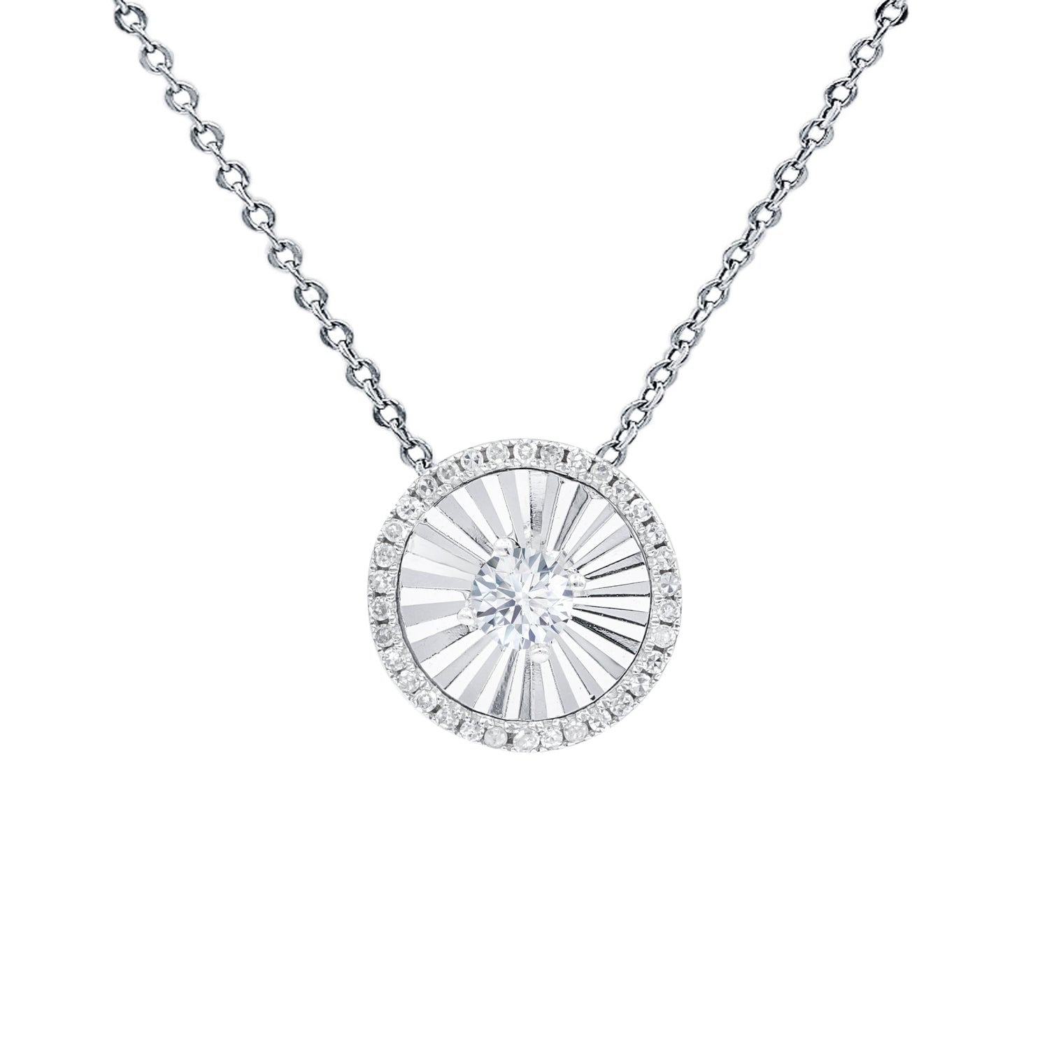 14kt white gold diamond pendant with center diamond surrounded 0.25 cts tw diamonds