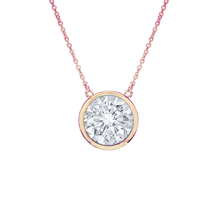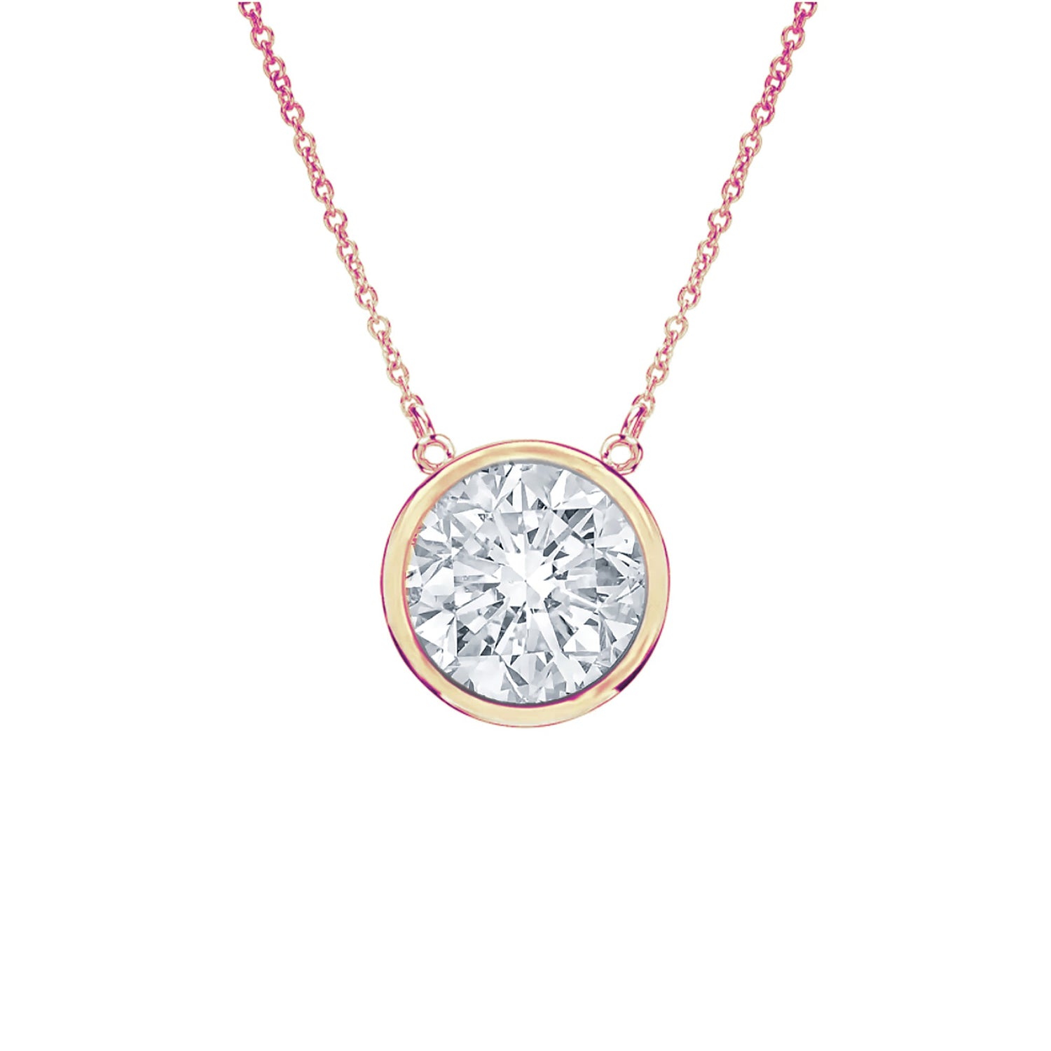 Made in 14kt rose gold with one round diamond totaling 0.20 carats on an 18-inch chain.
