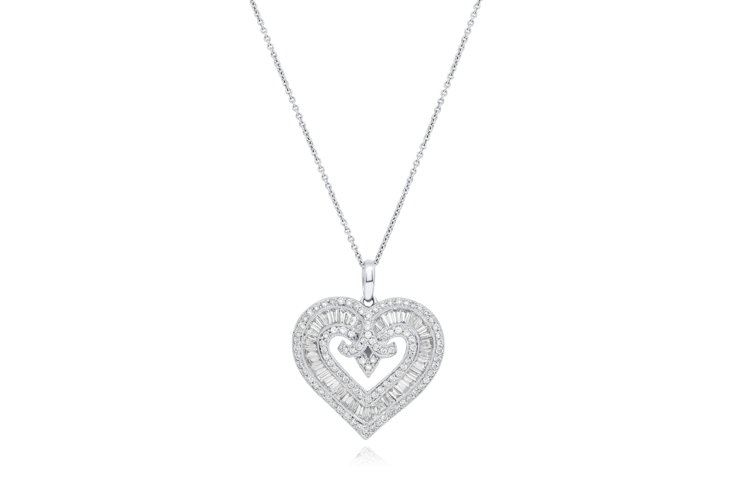18kt white gold diamond heart pendant containing 3.00 cts tw