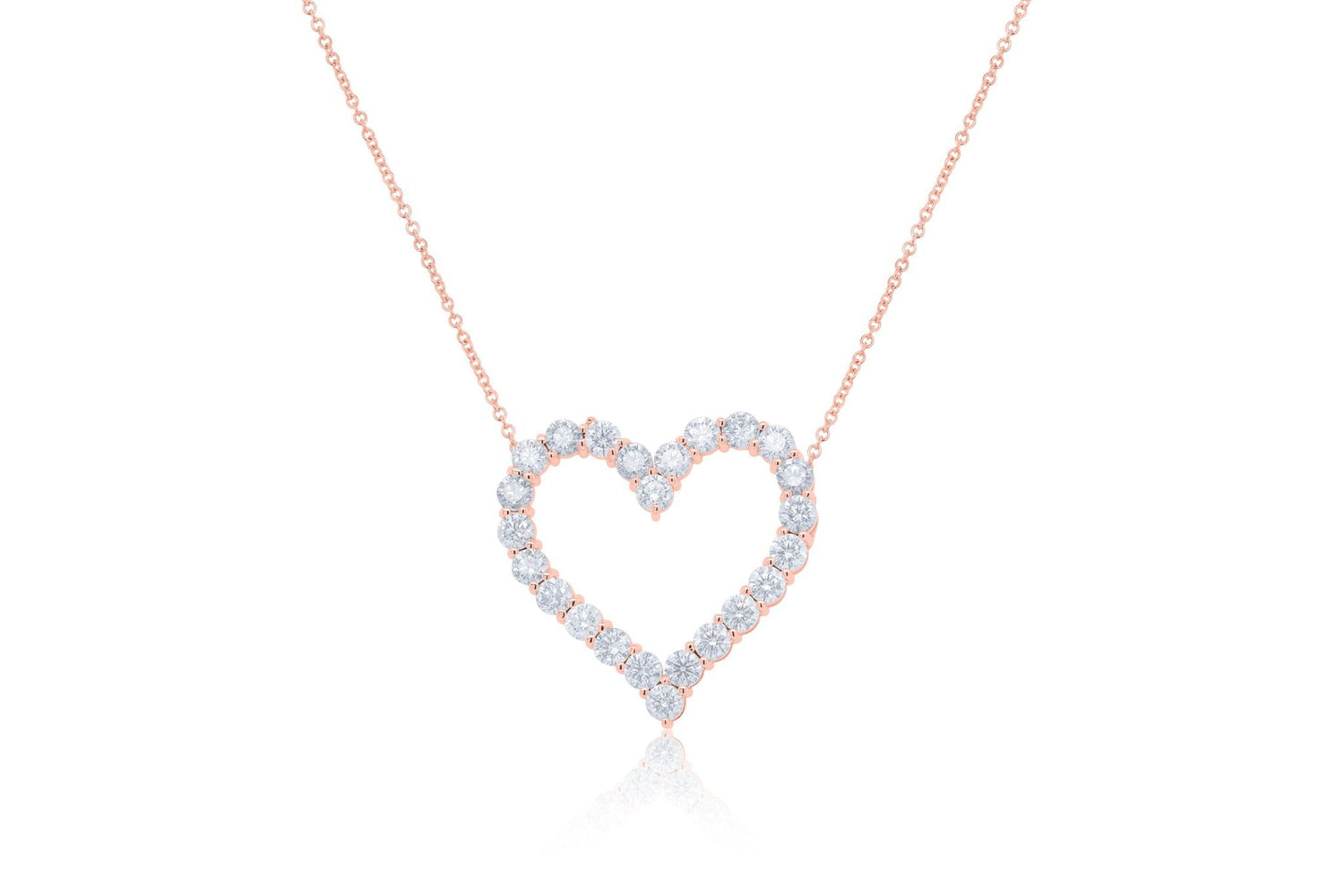 18kt rose gold open heart pendant featuring 3.30 cts of round diamonds, 24 stones