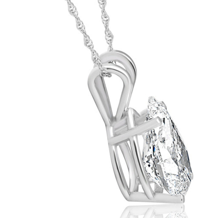 Certified 4 ct Pear Shape Solitaire Lab Grown Diamond Pendant White Gold Necklace