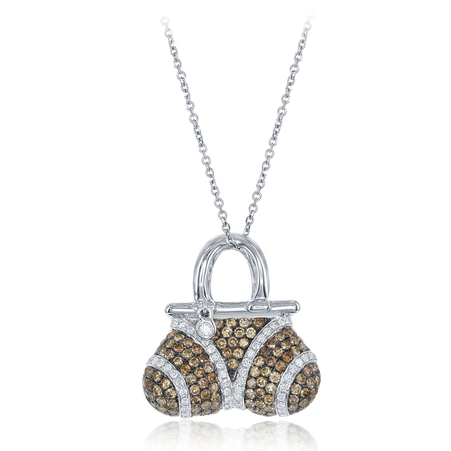 Style Notes: This 18kt White Gold Diamond Pendant with Purse-Shaped Design Featuring 1.60 CTS TW by Diana M is a playful yet elegant piece. Featuring brown diamonds and white diamonds, this pendant is designed in a purse shaped, making it a unique and fashionable accessory. The perfect balance of color and design, this piece adds a whimsical yet luxurious touch to any ensemble.