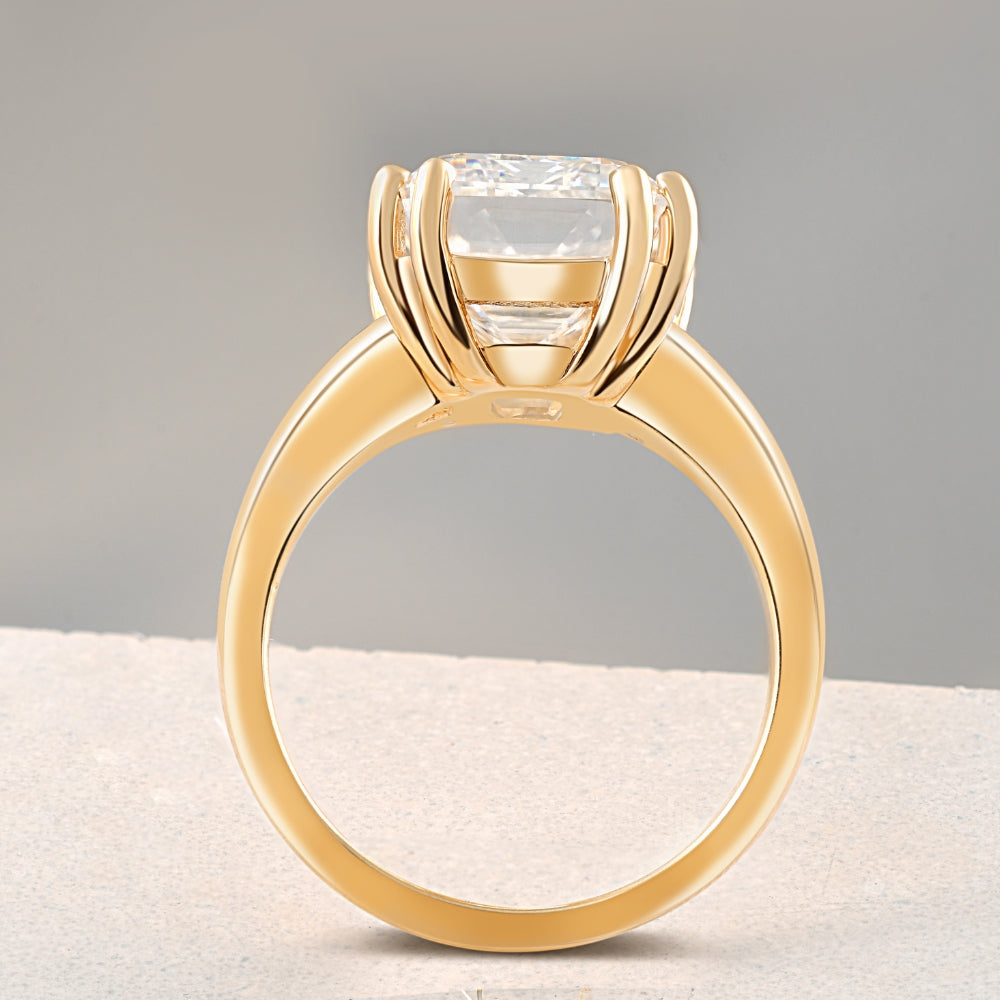 This Certified 10.00CT Emerald Cut Solitaire Diamond Engagement Ring 14k Gold Lab Grown by Pompeii3 is a remarkable engagement ring. Featuring a stunning 10ct emerald cut lab-grown diamond with H color and VS2 clarity, set in a highly polished 14k yellow gold band with 14k white gold prongs. It's grandeur is complemented by the meticulous craftsmanship, making it a once-in-a-lifetime piece. IGI certificate included.