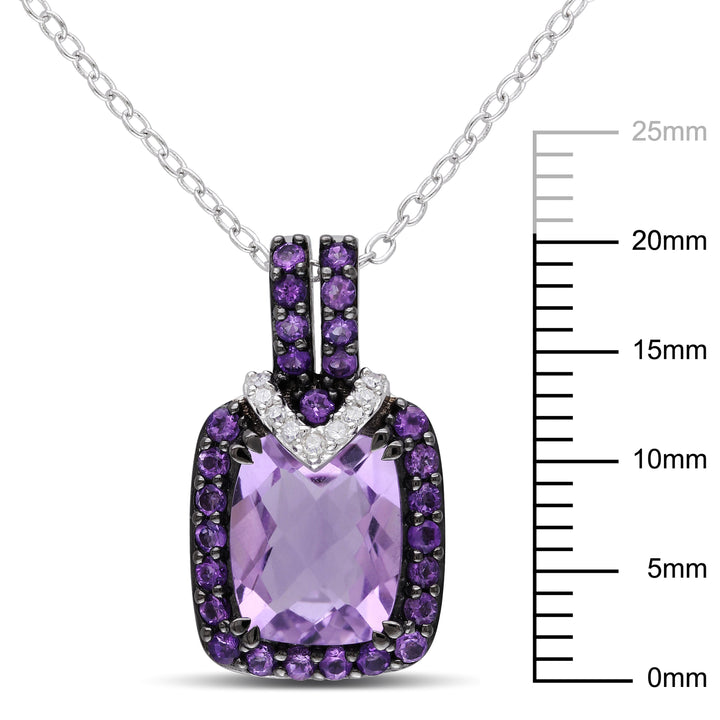 3ct TW Emerald Cut Amethyst and Diamond Accents Pendant with Chain in Sterling Silver