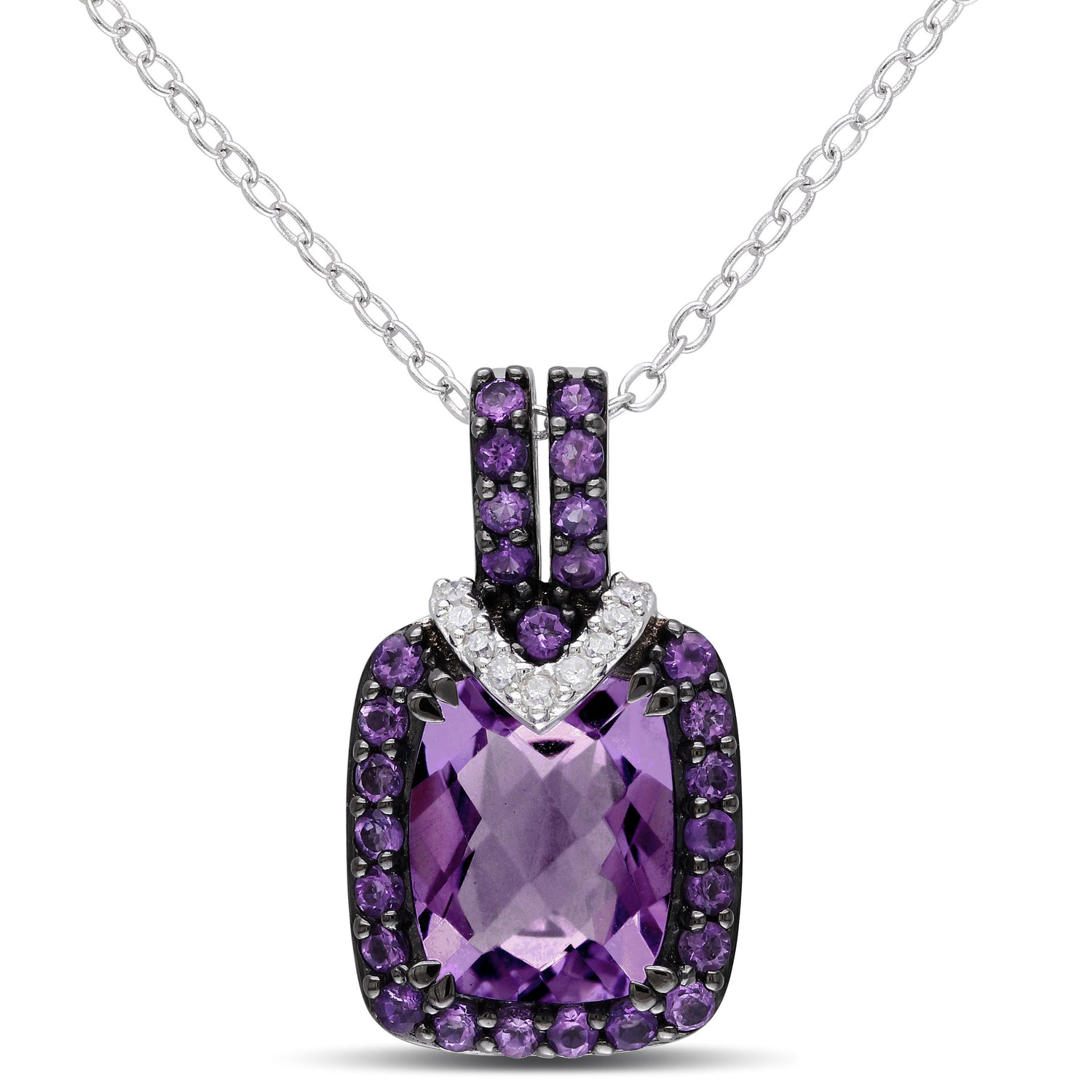 This Amethyst and Diamond Accent Pendant Necklace by Mimi & Max is a show-stopping statement of vivid color and sparkle. The striking cushion-cut amethyst is haloed by rich African amethysts and diamond accents, making this pendant the perfect piece for those who love to shine on social media or special occasions.