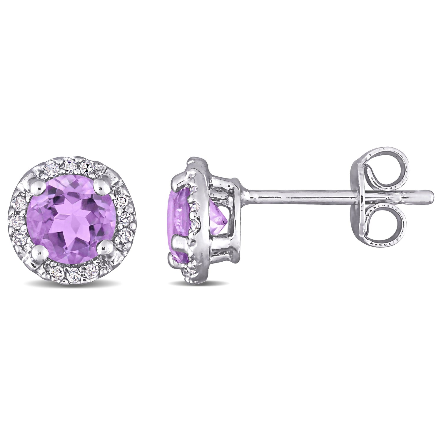 4/5ct TW Amethyst and Diamond Accents Halo Stud Earrings in Sterling Silver