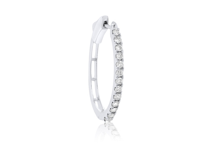 These 1.00 cts TW Diamond Halfway Oval Hoop Earrings by Diana M are designed to catch light with every turn. The graceful oval hoop shaped with diamonds lining half the design makes for a perfect balance of elegance and sparkle.