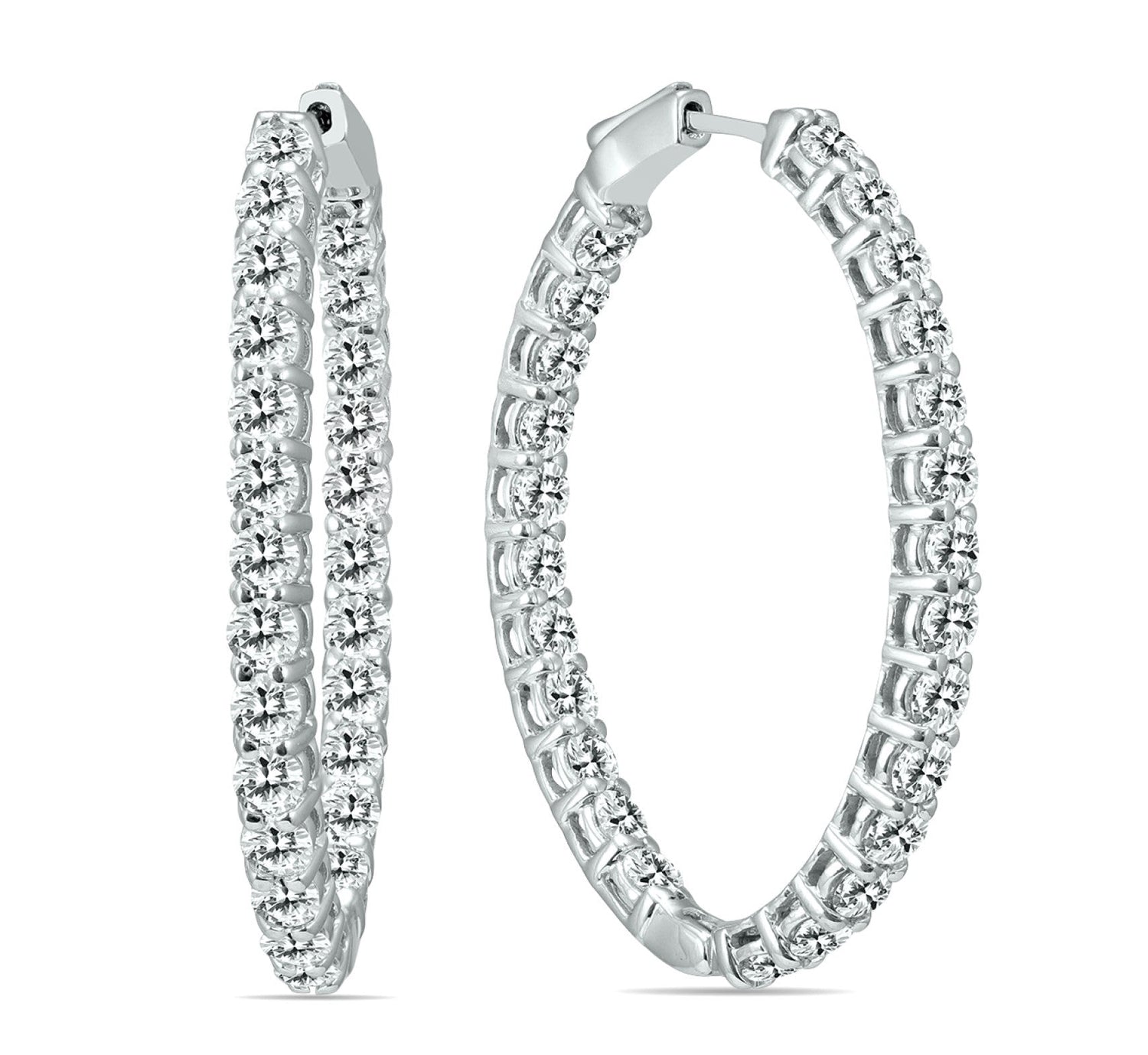 14kt white gold diamond in-out round hoop earrings comprised of 5.00 cts tw