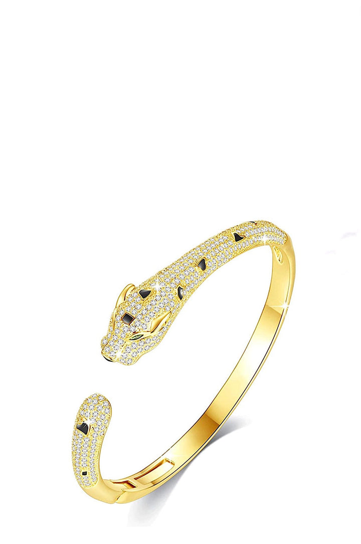 18k gold-plated finish with cubic zirconia motifs. Diameter measures 7 inches.