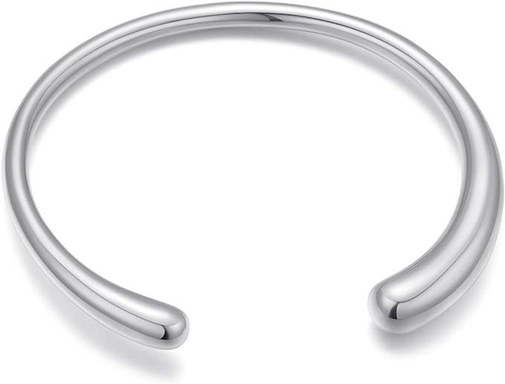 Crafted from premium silver plating. Inner diameter measures 2.24 inches. Modern cuff design.