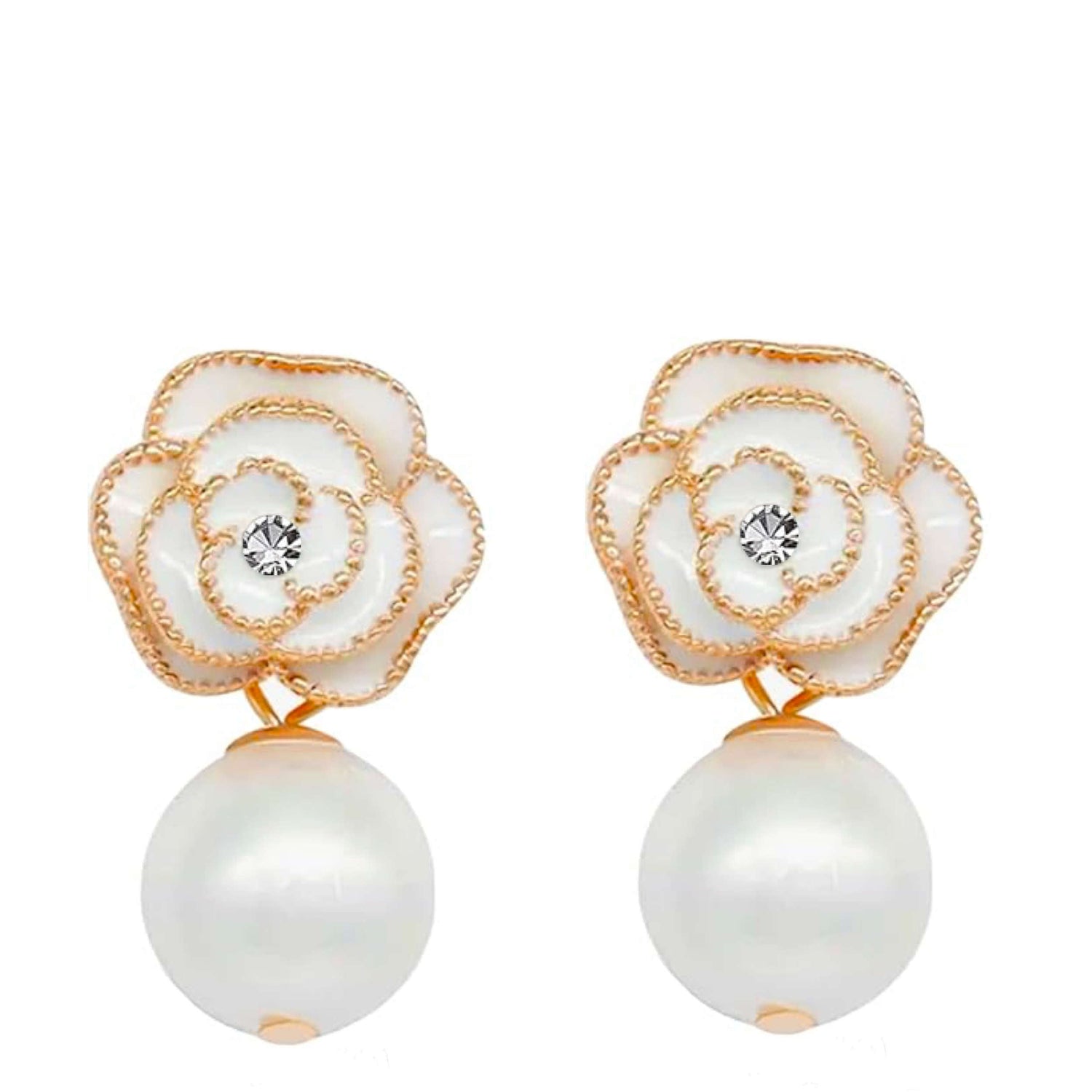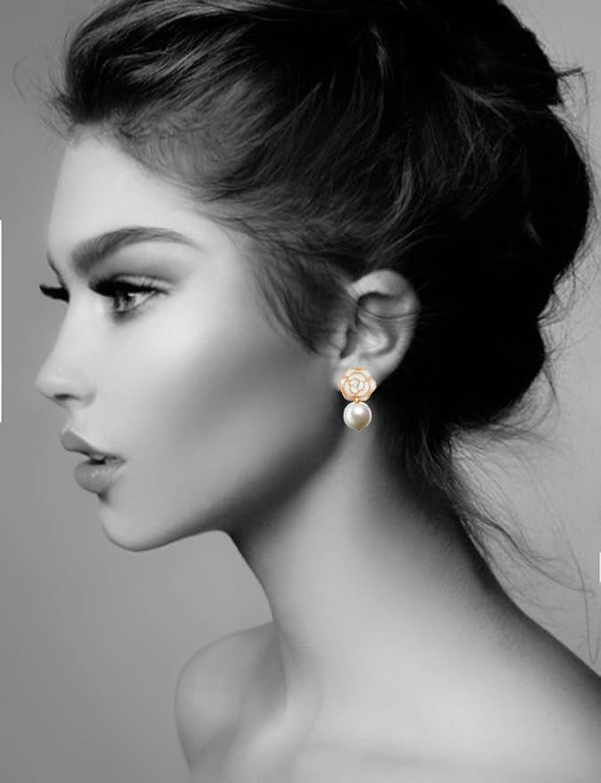 These 18K Gold Flower Pearl Drop Earrings by Liv Oliver are an exquisite blend of floral elegance and classic pearls. Perfect for sophisticated occasions, they bring timeless charm and modern luxury.