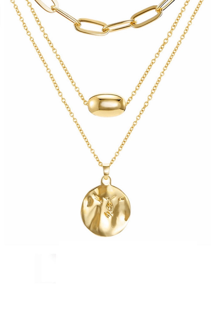 Crafted in 18K gold plating with multiple layers of chain. Necklace length: 16 inches.