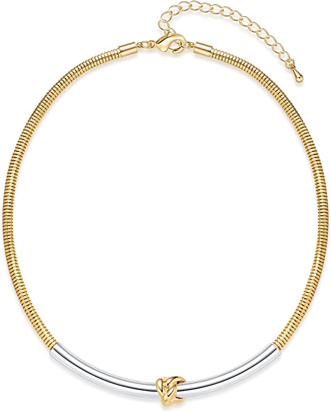 This 18k Gold Two Tone Knot Necklace by Liv Oliver embodies timeless elegance and delicate sophistication. Expertly plated in rich 18k gold, the necklace showcases a refined two-tone design with an intricately knotted pendant, symbolizing the powerful connection of love, friendship, and unity. Ideal for everyday wear, this versatile necklace adds understated luxury to your daily style, pairing perfectly with casual or formal ensembles. Effortlessly chic when worn alone, yet equally stunning layered with other fine necklaces.