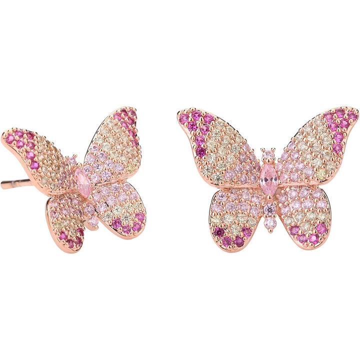18k Multi Pink Embellished Butterfly Stud Earrings