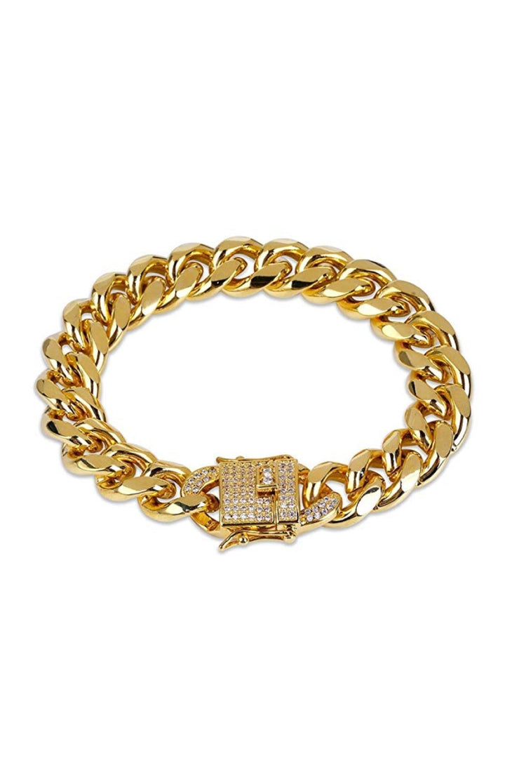 Crafted in 18K gold plating with CZ clasp. Bracelet length: 8 inches.