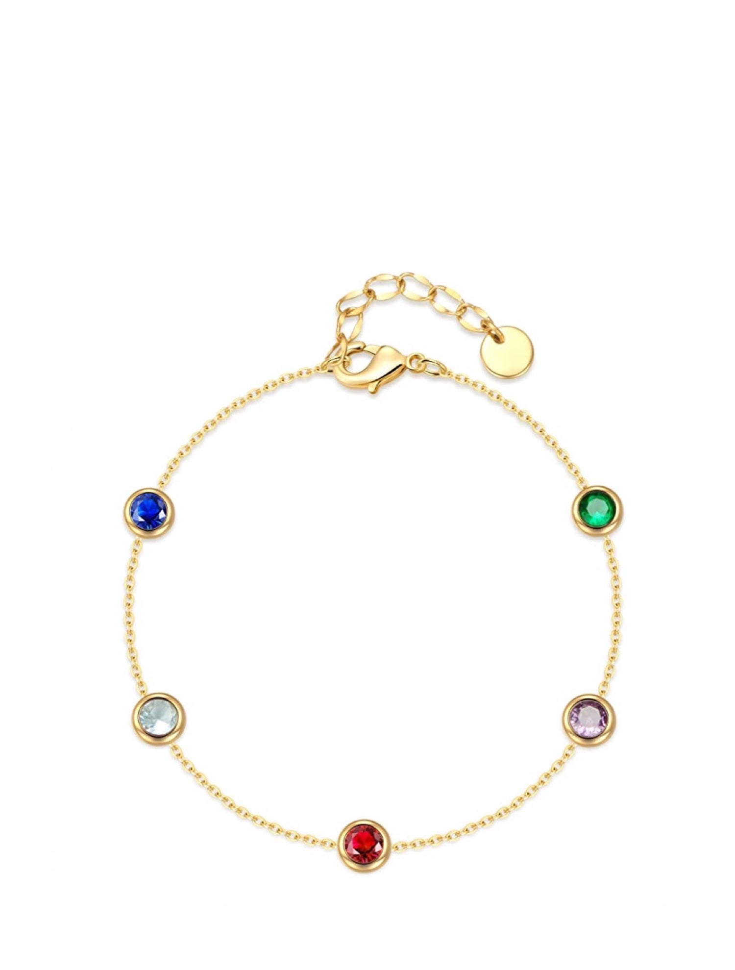 This Multi-Color Station Bracelet by Liv Oliver is playful yet elegant. Adorned with sparkling cubic zirconia stones set in luxurious 18k gold plating, it’s a versatile piece perfect for everyday layering or adding a touch of color to evening attire.
