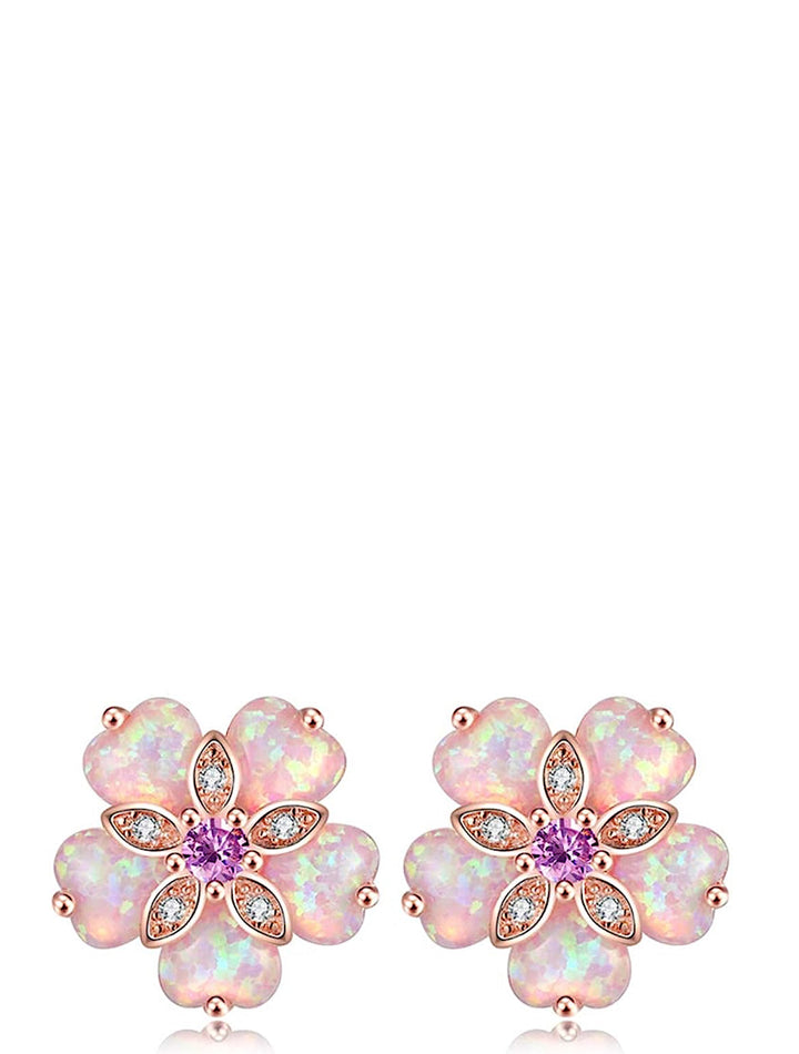 18K Rose Gold Multi Pink Opal Stud Earrings