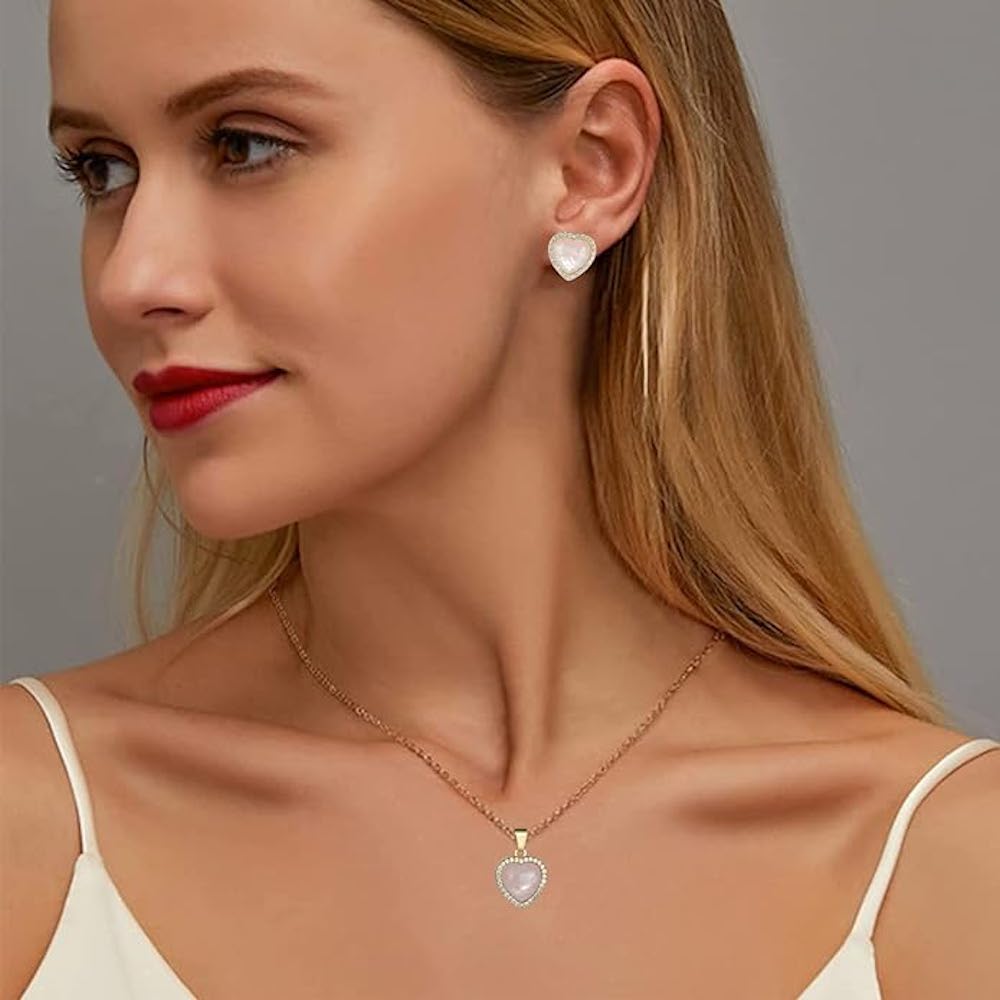 18K Gold Sea Blue Heart Stud Gemstone Earrings