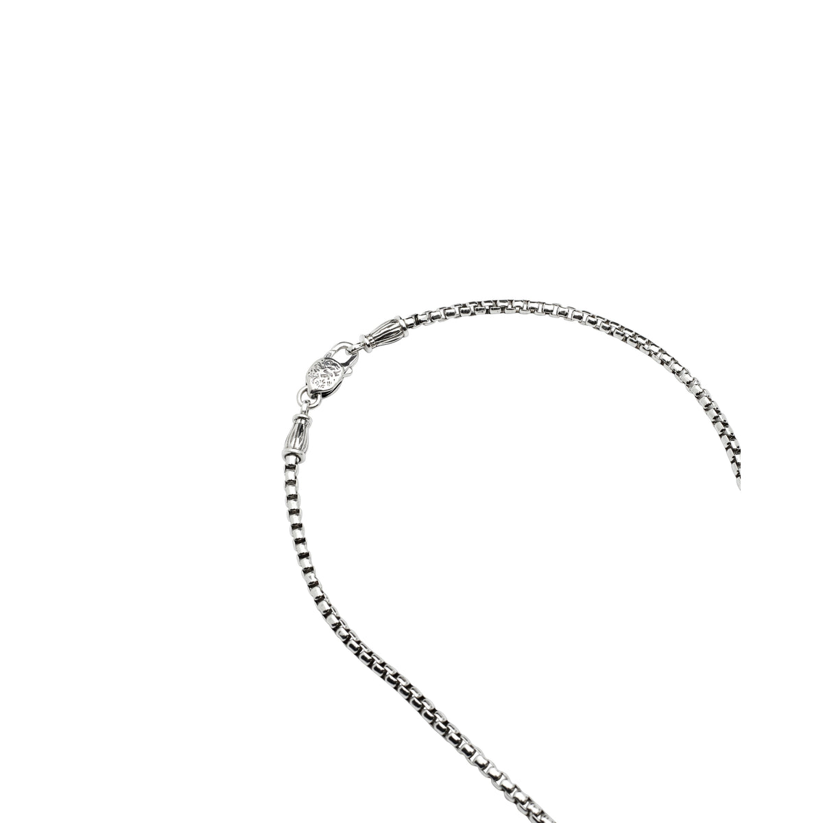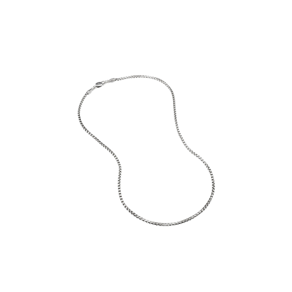 The Konstantino Sterling Silver Box Link Chain 3.5 mm Wide is a stylish and durable chain crafted from sterling silver. The 3.5mm wide box links create a sleek and contemporary look, perfect for pairing with any pendant. The lobster claw clasp ensures a secure fit, making this chain a versatile addition to any jewelry collection.