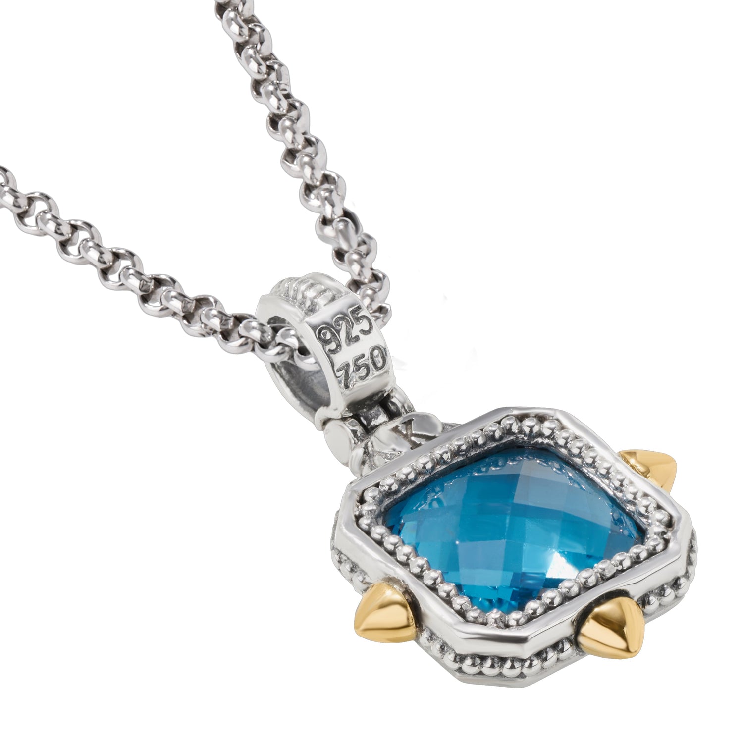 Made of sterling silver with 18k yellow gold accents and blue spinel. Chain length: 18' - 20'. Made in Greece.