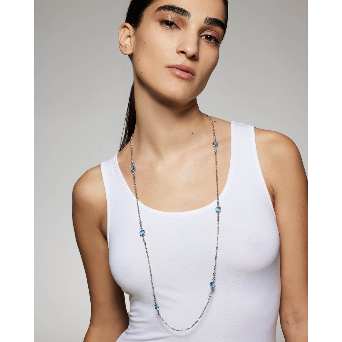 Made of sterling silver with blue spinel. Lobster clasp. Chain length: 36'. Made in Greece.
