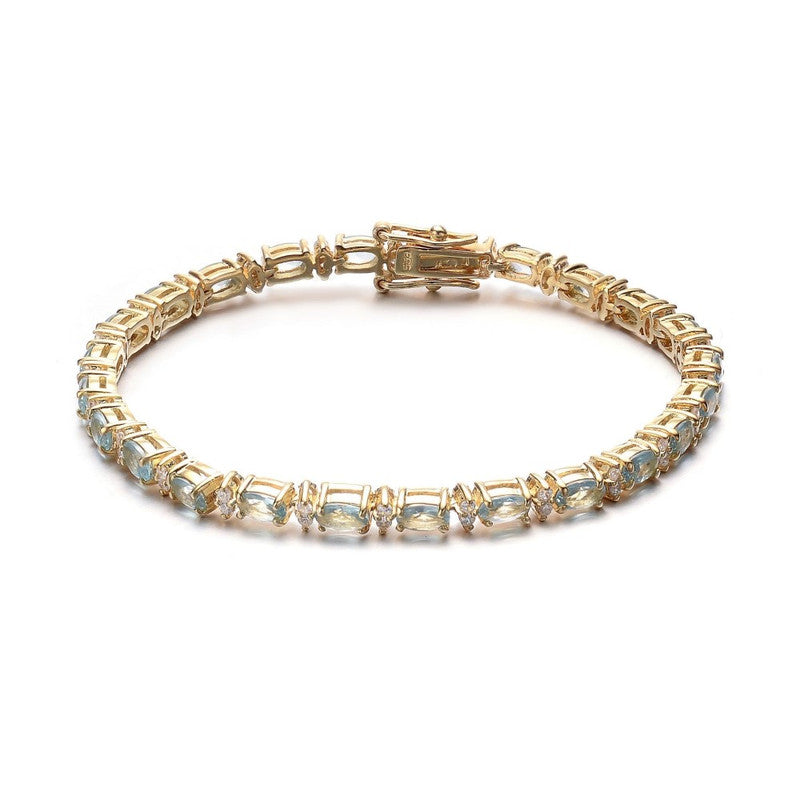 Sterling Silver 14k Yellow Gold Plated Tennis Bracelet with Colored and Clear Oval Cubic Zirconia in Alternation