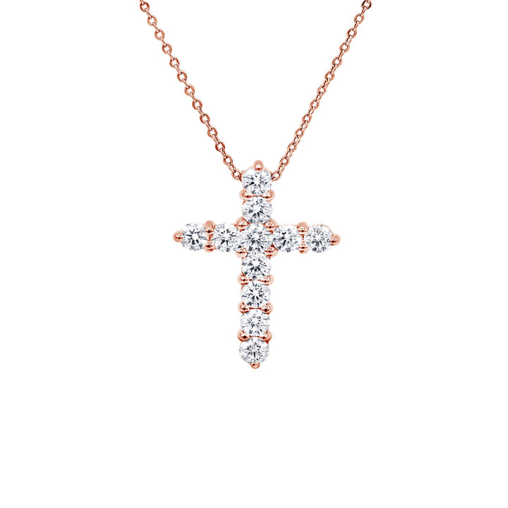 14kt rose gold diamond cross pendant adorned with 0.70 cts tw of brilliant cut round diamonds