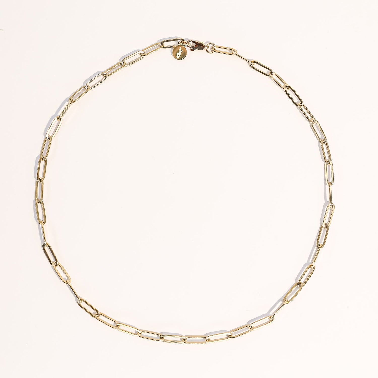 Crafted with 18K gold-plated paperclip chain and 18K gold-plated clasp. Pictured length 17'.