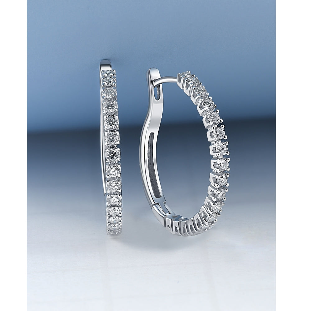 1/2 cttw Diamond Hoops in 10K White or Yellow Gold 1' Tall