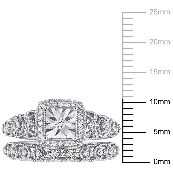 1/3ct TDW Diamond Square Halo Bridal Ring Set in Sterling Silver