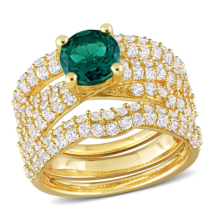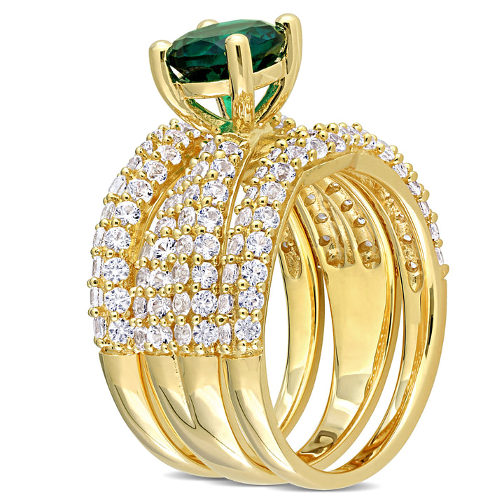 3 3/4 ct TW Created Emerald Created White Sapphire Bridal Ring Set in Yellow Silver