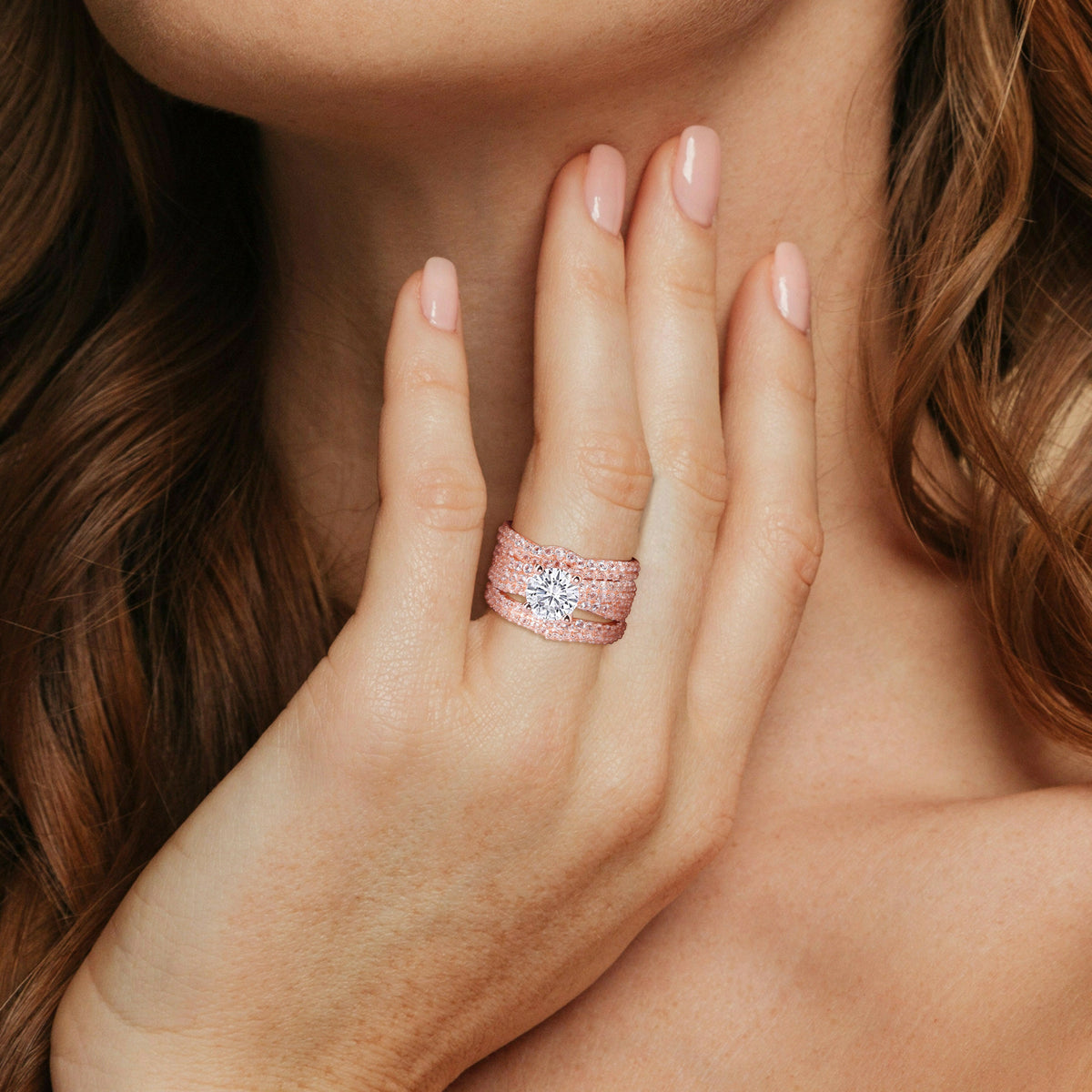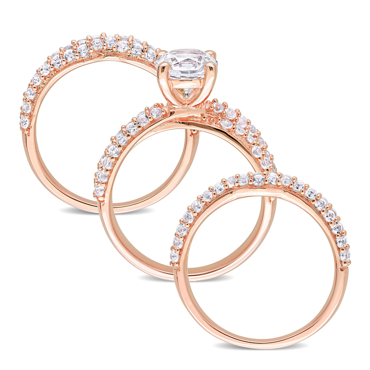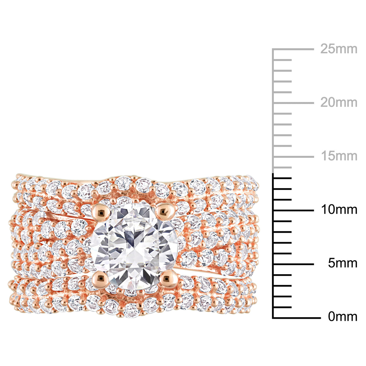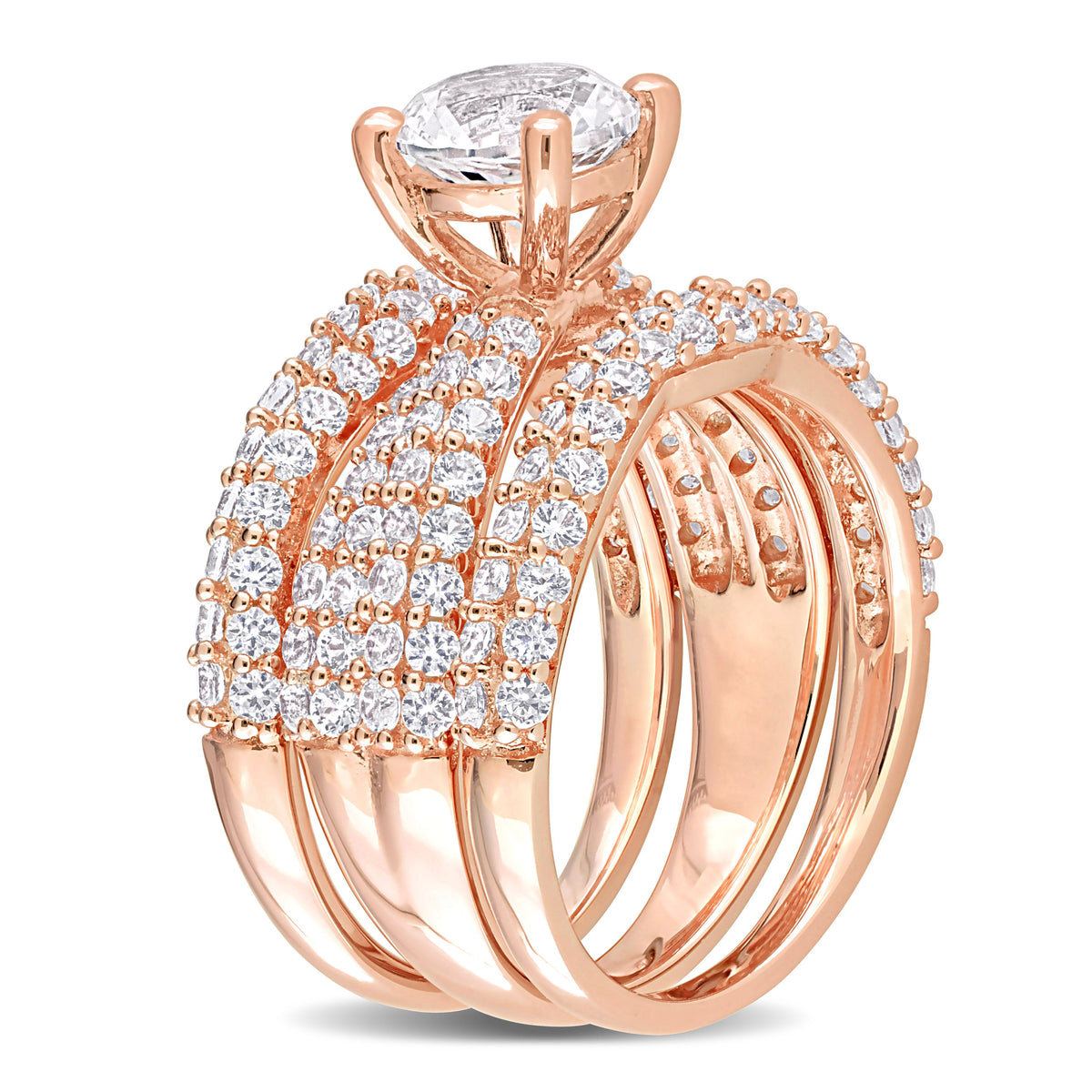 4 1/5ct TW Created White Sapphire Bridal Ring Set in Rose Silver