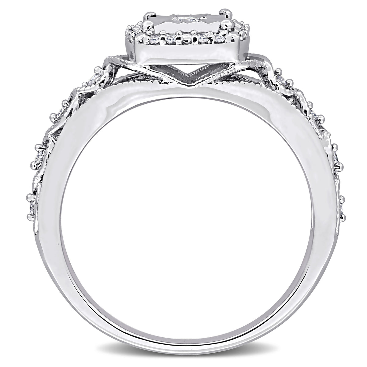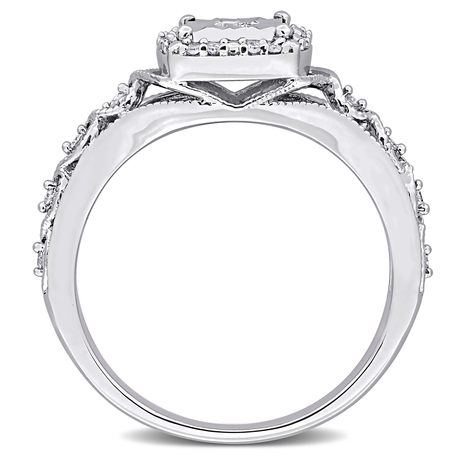 Sterling silver with 1/6 carat total diamond weight, milgrain edges.