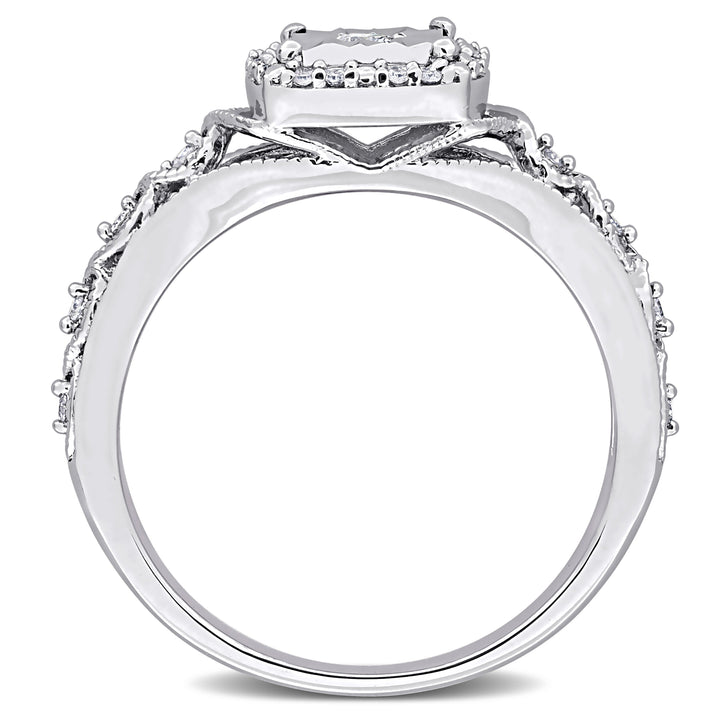1/6 ct TDW Diamond Halo Vintage Style Ring in Sterling Silver