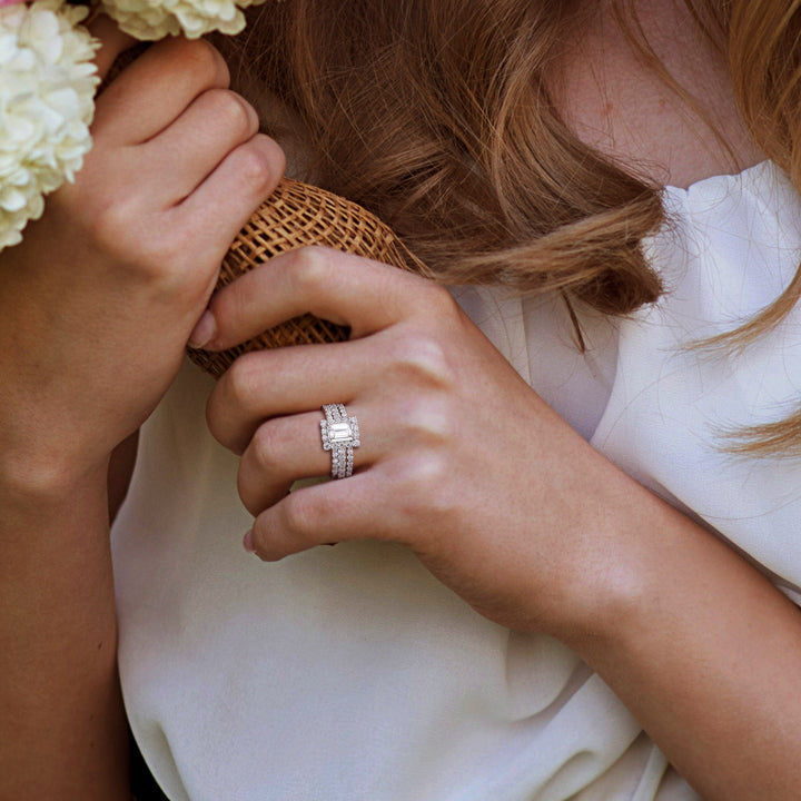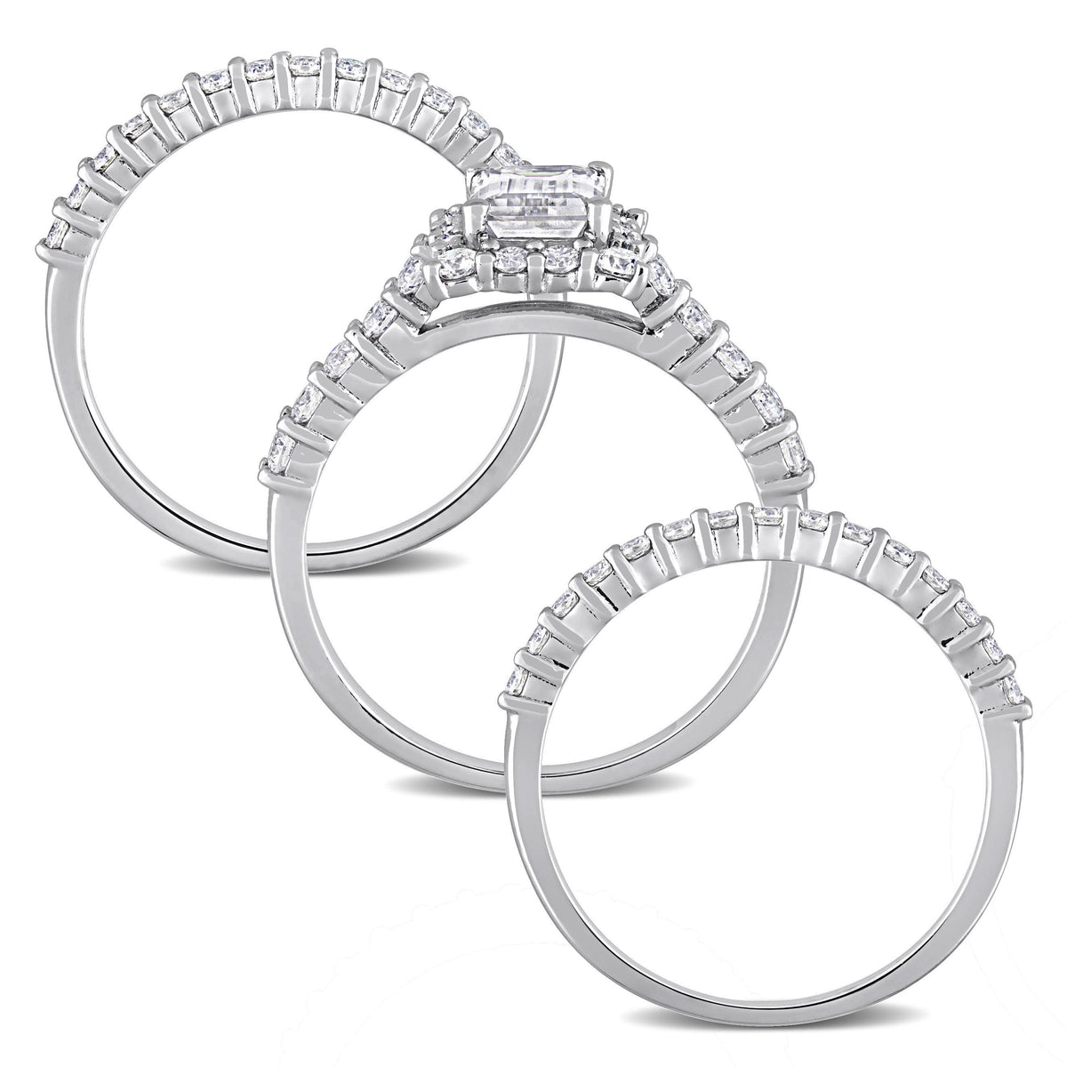 2 1/10ct DEW Created Moissanite Square Halo Bridal Ring Set in Sterling Silver