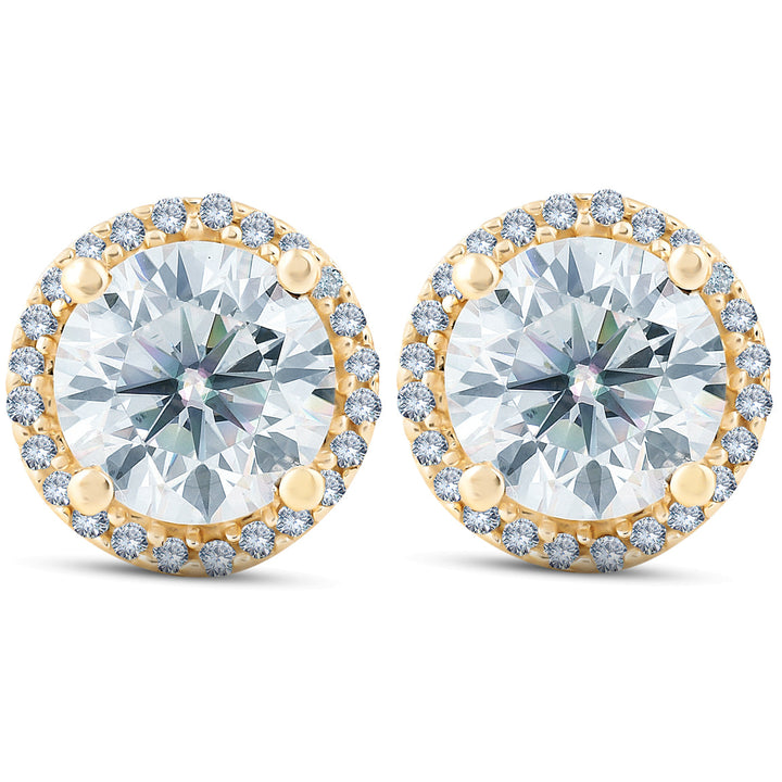 2 1/5 Ct Diamond Halo Screw Back Studs 10k Yellow Gold Lab Grown