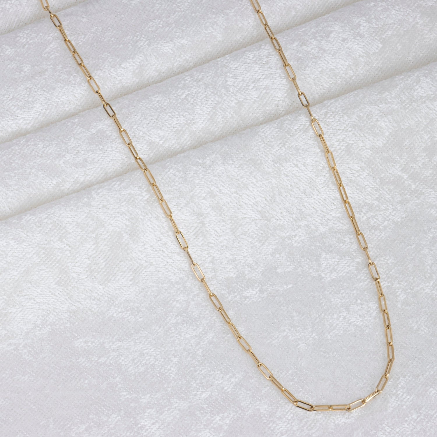 14K yellow gold with paperclip chain design, 16-inch length with 2-inch extender.
