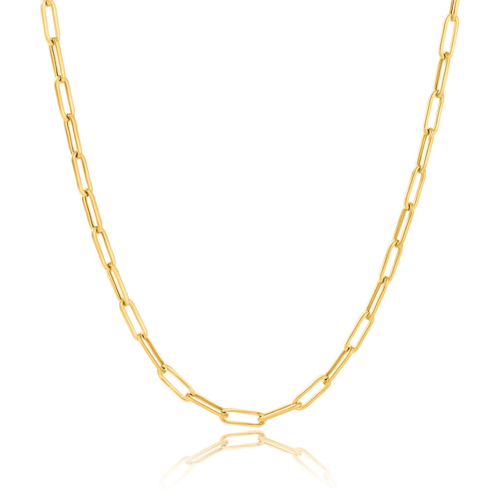 The 14K Yellow Gold Paperclip Chain Link Necklace by MaxColor is a versatile and modern piece that enhances any ensemble. The sleek paperclip chain design, crafted in 14K yellow gold, provides a clean and contemporary aesthetic. With a 16-inch chain and a 2-inch extender, it offers a customizable fit for every wearer.